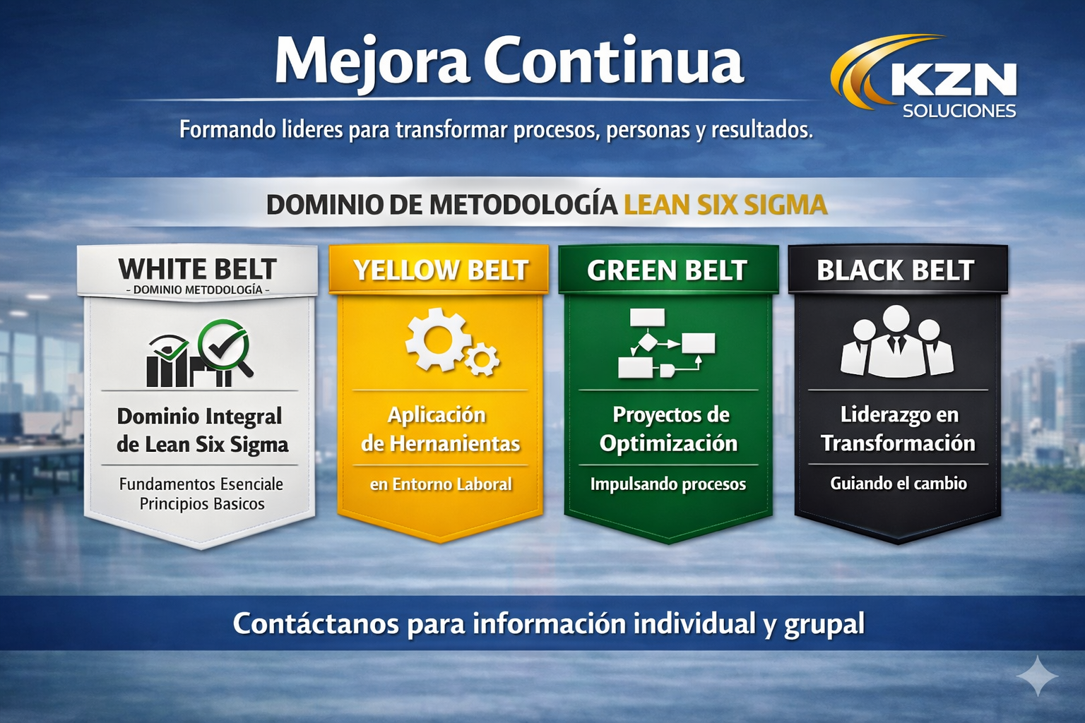 Cubrimos el espectro completo de la metodología. Desde la filosofía de Mejora Continua hasta el rigor estadístico de Six Sigma, nuestros cursos integran lo mejor de ambos mundos: